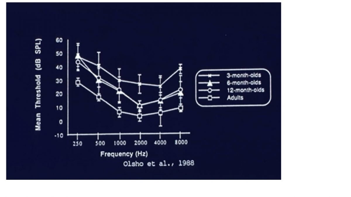- a las dificultades de percepción en ambientes ruidosos, donde tiene un desempeño mucho más pobre para la discriminación de la palabra que un adulto.