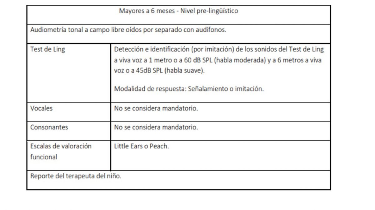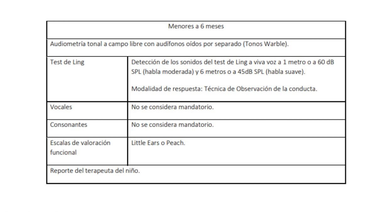 Si el niño es menor de 2 años y no se puede obtener una respuesta condicionada al sonido, se podrá utilizar la Evaluación Subjetiva de la Conducta Auditiva: