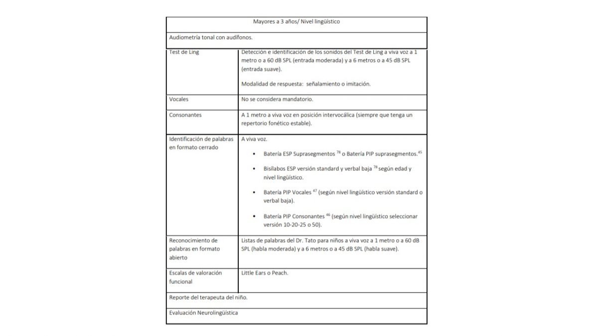 - la validación de la función auditiva a través de evaluaciones que realizarán los especialistas y cuestionarios de satisfacción que deben completar padres, maestros y rehabilitadores.